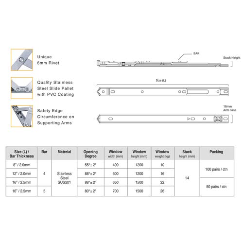 18 SQUARE GROOVE SIDE HUNG FRICTION STAY