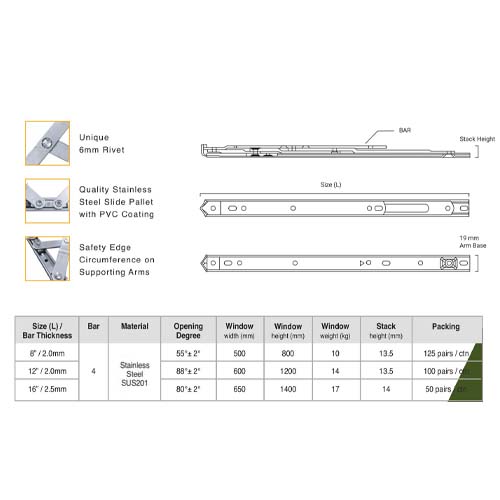 19 ROUND GROOVE SIDE HUNG FRICTION STAY