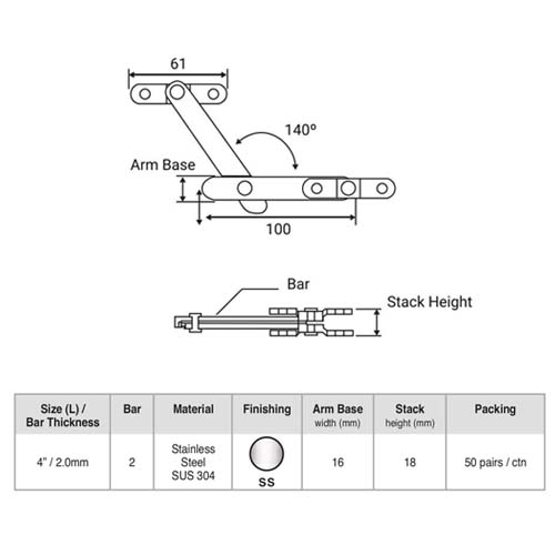 IBB-304 TWO BAR HINGE (19RG-2BH)